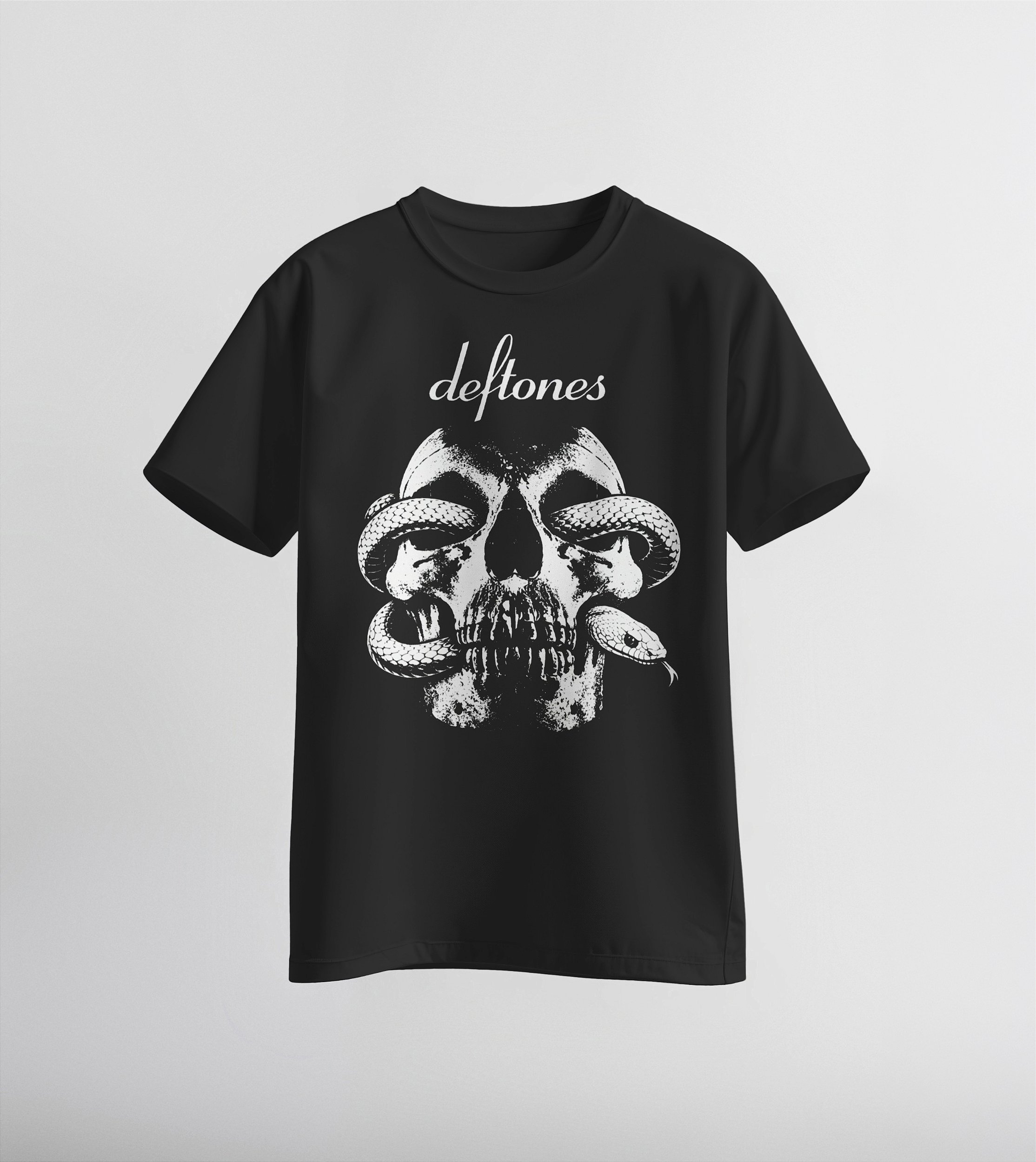Estampa da banda Deftones, arte inspirada em dois álbuns: o álbum autointitulado e o álbum Private Music