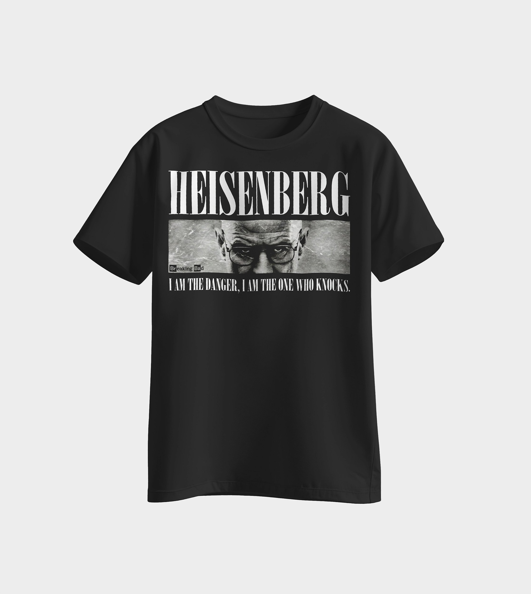 Estampa do personagem Walter White da série Breaking Bad, na estampa há o seu codinome Heisenberg e uma frase dita por ele que ficou muito conhecida.