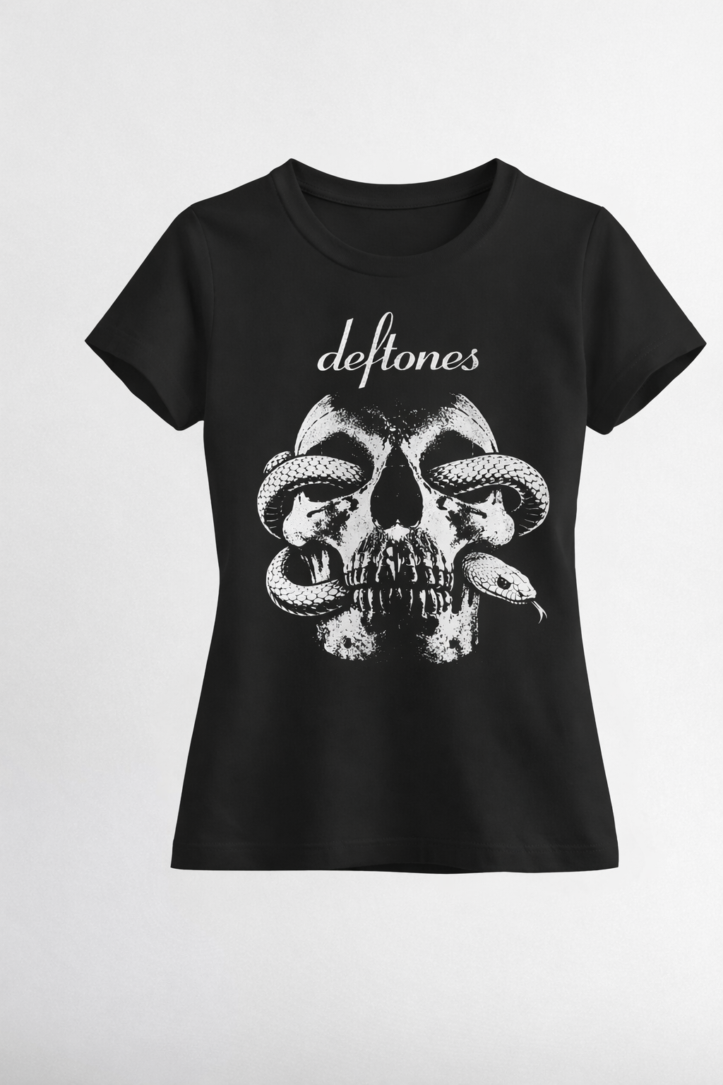 Estampa da banda Deftones, arte inspirada em dois álbuns: o álbum autointitulado e o álbum Private Music